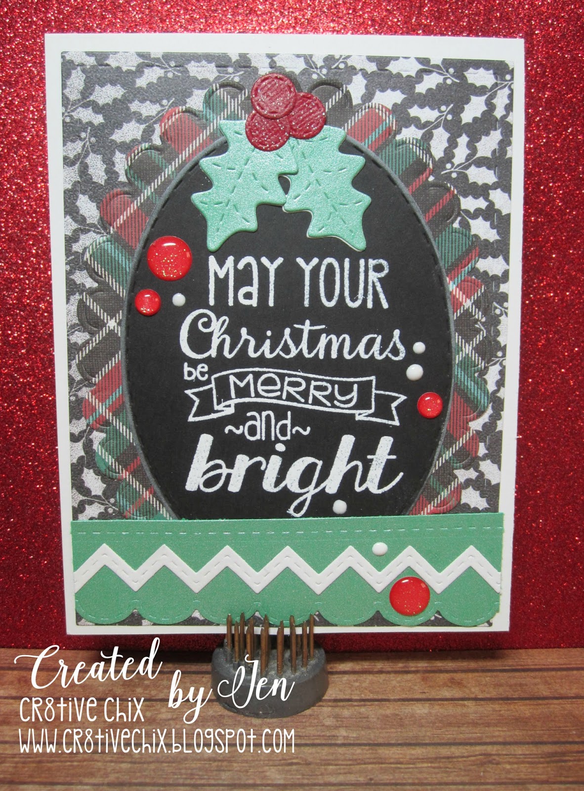 Merry & Bright Chalkboard Products: Jaded Blossom Border Dies, Card Mat Dies, Christmas Dies, Christmas Luggage Tag, Scallop Oval Dies, Stitched Oval Dies |